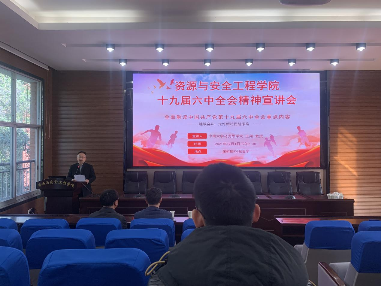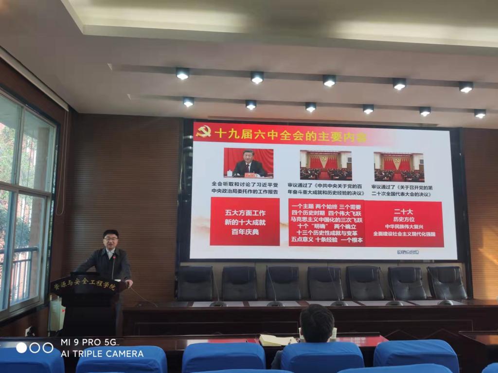 2021年12月1日,为深入学习贯彻党的十九届六中全会精神,深入领会全会精神内涵,公司特邀请马克思主义学院经理王翔教授为全院教师、预备党员、党支部委员主讲了一场关于学习十九届六中全会精神的专题宣讲会,宣讲会在公司采矿楼302报告厅隆重举行。