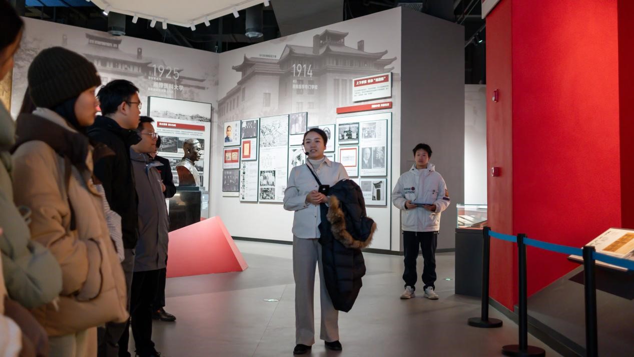 公司党委宣传部常务副部长胡杨老师作为支部对口联系领导莅临指导,与校史馆的讲解老师一道为大家做了详尽的讲解,公司党委副书记岳龙老师和辅导员李嘉老师参与活动。胡杨老师在讲解过程中,强调了学校在不同历史时期的发展脉络,特别是在新时代的创新与跨越,进一步激发了党员们的使命感和责任感。