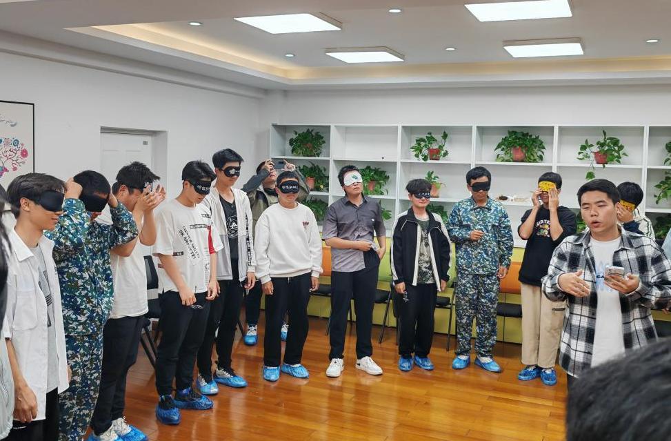 本次团辅活动分为三个环节。首先,团辅老师简要介绍团辅活动内容,并与员工共同制定活动守则。随后进入游戏环节。在游戏“不倒森林”中,每名同学都在谨慎而专注地移动着,同时保持身体与杆的平衡。在游戏“竹筒传球”中,为了维持竹筒和球的稳定,同学们全神贯注、同心协力。每失误一次就要从头再来,这就让团队配合成为了获胜的关键。而在游戏“取名作画”中,同学们将符号与文字相组合,每一幅作品都具有不同的含义。同学们在游戏中相互了解、增进信任,通过积极沟通与紧密配合感受到了团队协作的魅力。团辅活动接近尾声,团辅老师对活动进行总结,并呼吁同学们积极融入集体、关注自身心理健康,以乐观的心态迎接老员工活。