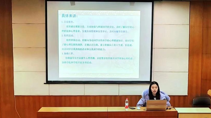 本次培训会内容主要分为三部分。第一部分为“心理委员的定位”,周婷老师认为心理委员是一个综合的职位,担任这个职位的人需要有自信、有爱心并且富有责任感。在她的讲解下,各位心理委员对自身职责有了更深的认识,了解了该如何应对各种情况。第二部分为“准确识别心理问题的程度”,心理问题的程度分为一般、严重和疑似神经症。周婷老师对各类程度做出了逐一介绍并分别给出了相应的特征和处理方法,这将帮助心理委员们提高在应对不同问题时的处理能力。第三部分为“心理委员的工作方法与要求”,周婷老师针对心理健康教育方面提出了一些建议供心理委员们参考,例如组织心理健康教育活动、多和寝室长沟通等,并且特别指出要注意伦理要求,这使心理委员能够更好地协助老师发现心理问题并预防危机事件。最后,本次培训会在合影中圆满结束。