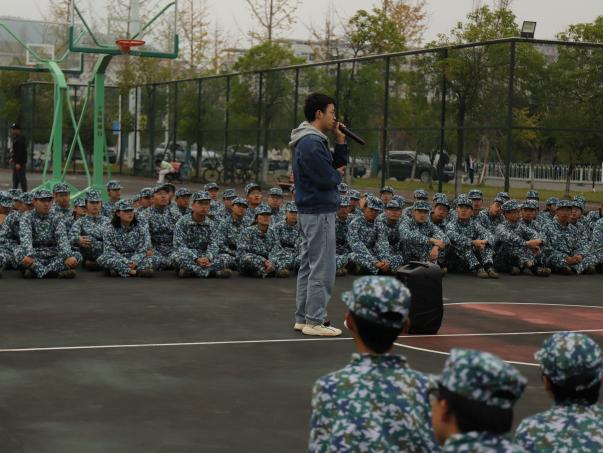 活动伊始,向奕博向全体新生介绍刘恒瑜的个人情况。刘恒瑜重点讲述了自己参军的心路历程,如何一路逆袭从成绩落后到名列前茅的过程。在谈及军旅生活时,他讲到自己新兵时期不断在辛苦与磨难中成长,练就出了不怕困难,敢于担当,坚韧不拔的品质,为后来的学习生活打下坚实基础。最后号召同学们积极参军,在迷彩中丰富人生阅历,升华人生价值。