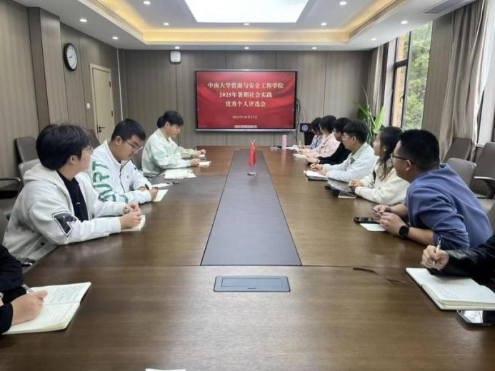 10月27日,暑期社会实践优秀个人评选会在采矿楼222会议室举行。由院团委书记丁德孝、副书记王子涵及8名员工团委委员组成评审团,依据实践时长、服务成效、社会反响、成果产出等维度,对24名入围候选人进行综合评审。经现场无记名投票,最终评选出12名社会实践优秀个人。