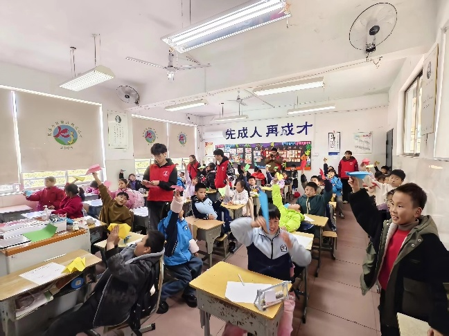 此外,科技创新与心理健康元素也成为了活动亮点。志愿者以5G技术、C919大飞机等案例为切入点,通过VR体验和模型组装,激发青少年对科学技术的兴趣;在“放飞梦想”主题活动中,借助动画短片、伟人故事分享和纸飞机DIY,引导儿童树立人生目标,将心理健康关怀融入成长教育。