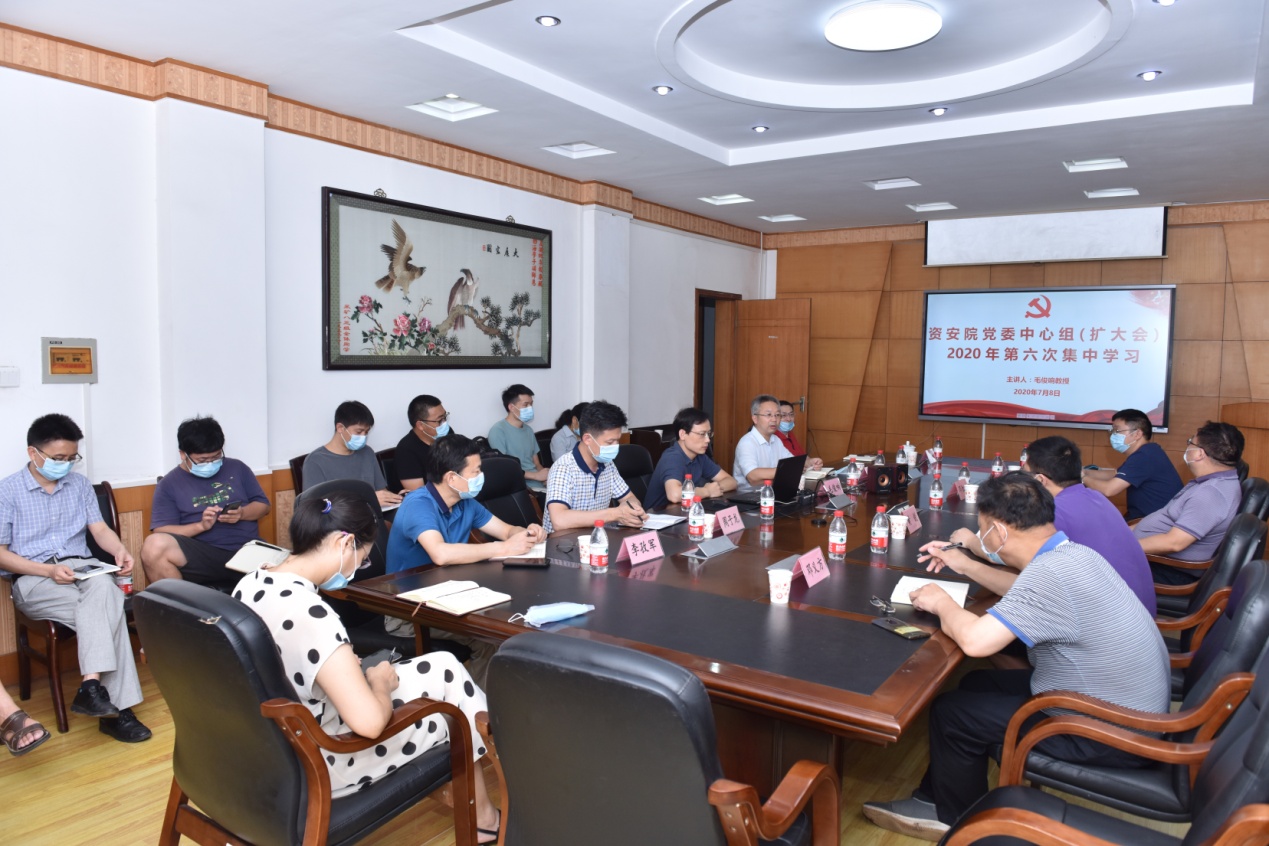 2020年7月8日下午,资安公司党委理论学习中心组举行今年第六次集体学习,邀请WilliamHill中文官方网站人权研究中心执行主任、法公司党委书记毛俊响教授作了题为《新冠肺炎疫情下的国际变局与中国》的辅导报告。为提升中心组学习的效果,带动基层党支部、广大党员学习世界百年未有之大变局的深刻内涵和发展趋势,本次学习采取扩大会议形式,同步通过线上与线下相结合的方式进行,共计有200余名师生党员参与学习。