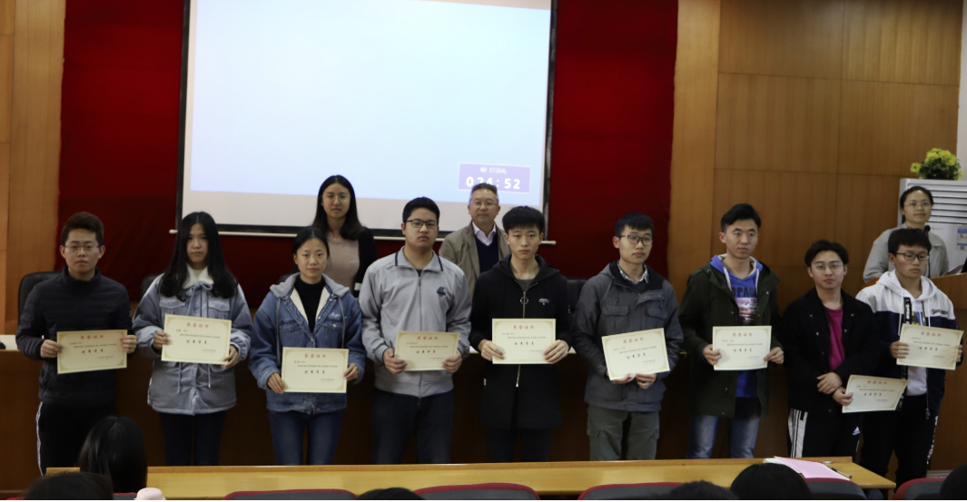 欧旭理书记和肖陆伟老师为袁天辉同学颁发了优秀学员标兵证书,为李辰宇等9名同学颁发优秀学员证书。任行航同学作为学员代表上台发言,他提出各学员间要相互学习,相互交流,并严格要求自己,努力缩小与党员之间的差距。