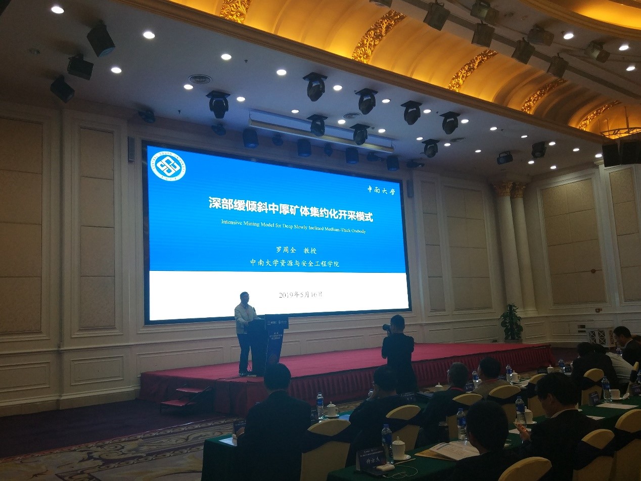 会议期间,罗周全经理和曹平教授受邀分别作了题为“深部缓倾斜中厚矿体集约化开采模式”和“硬岩TBM掘进机理与岩石断裂”,系统介绍了深部固体矿产资源集约化开采模式的概念含义、协同演化、实施步骤、应用案例和滚刀作用下岩石内部裂纹破岩机理、表面裂纹破岩机理及其相关理论试验验证,获得了参会专家和同行的高度评价,扩大了公司采矿工程、岩土工程等学科的影响力。