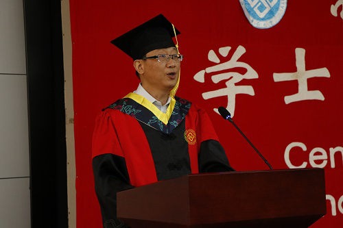 欧旭理书记首先宣读了2019届本科优秀毕业生评优名单,并为2019届湖南省优秀毕业生和湖南省创新创业优秀毕业生获得者颁发荣誉证书。黄锐副经理宣读了学士学位授予员工名单。罗周全经理发表致辞,代表学院全体教师,向2019届本科毕业生们表示衷心的祝贺,并向同学们提出四点希望和要求:一是希望大家胸怀大志,志存高远;掌握真才实学,努力成为可堪大用、能担重任的栋梁之材。二是希望大家踏实肯干,勇担重任;善于挑战极限,行稳致远,在平凡中工作做出不平凡的事业。三是希望大家大胆创新,突破极限;坚持创新、始终创新,实现自我突破和发展。四是希望大家严于律己,慎独慎微;培养和强化自我约束、自我控制的意识和能力,永葆一颗赤子之心。