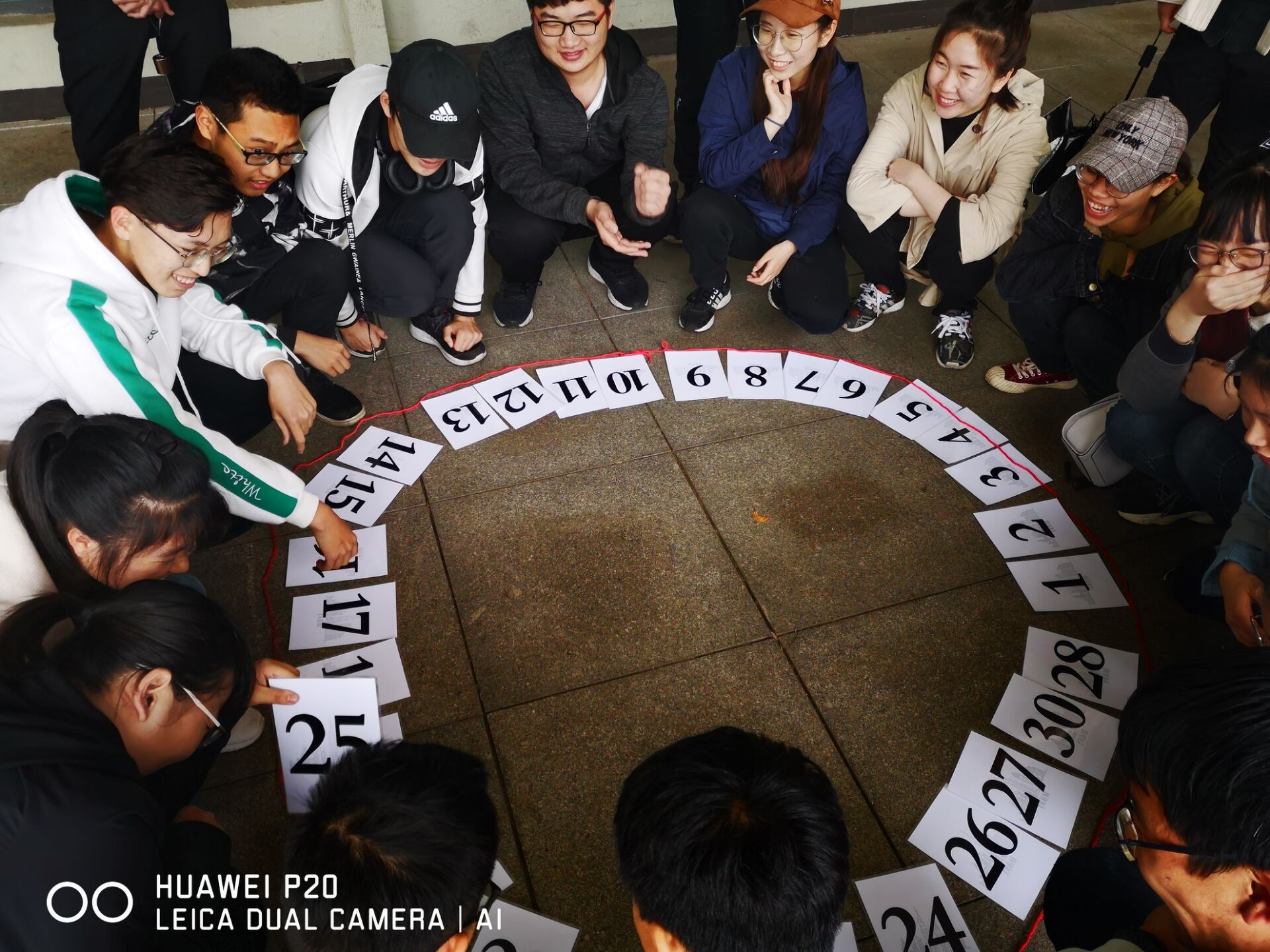 绵绵细雨虽恼人,却抑制不住同学们参与比赛的热情。“盲行勇士”、“巨人脚步”、“同心鼓”、“极限时速”四个富有思想性、挑战性和趣味性的游戏极大考验着同学对规则的解读能力、相互配合能力以及反应能力。游戏的难度并未让热情消减,同学们积极探讨策略并配合参与练习寻找技巧。在“同心鼓”环节,同学们14人为一组,将鼓拉起,通过一次次的尝试逐渐掌握了团队配合方法和提高成绩的方法。而在“巨人脚步的比赛中,同学们10人一组共同前行,整齐的口令声不时传来。比赛过程中,同学们欢乐的心情始终未减,欢笑声、口令声、欢呼声在场上缭绕,构成了细雨下最暖人的景色。经过最终比赛,土木安全类1829班以总成绩96分荣获比赛第一名,土木安全类18271818班分获第二、三名。