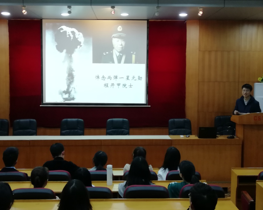 班会伊始,刘士浩同学对两弹一星元勋程开甲院士进行了详细介绍。随后,同学们观看了程开甲院士先进事迹的视频。程开甲院士在自己的岗位默默奉献,将个人追求融入国家命运,为国家保驾护航,为国家无私奉献。在感受了程开甲院士伟大的人格魅力和对我国国防事业的坚守后,同学们进行了感悟分享和交流。程开甲院士勇于付出、敢于牺牲,将个人理想与事业与民族发展和国家强盛相统一,这种精神激励了同学们在致力科研、报效祖国的道路上笃定前行。