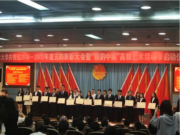 在“五四”青年节到来之际,共青团WilliamHill中文官方网站委员会举办了2016-2017年度五四表彰大会暨“雅韵中南”高雅艺术活动季启动仪式,公司荣获了“五四红旗团委标兵”、“优秀研究生会”、“优秀员工会”、“‘青春向学’学风建设先进集体”、“新媒体工作奖”等荣誉称号。