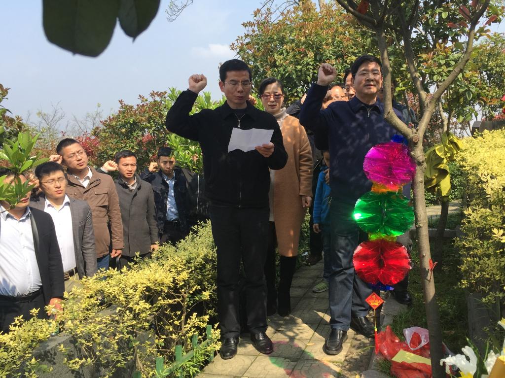 辅导员向林老师敬献鲜花,行注目礼,表达对林老师的崇高的敬仰和深切的怀念,公司党委孙胜同志领誓重温入党誓词。
