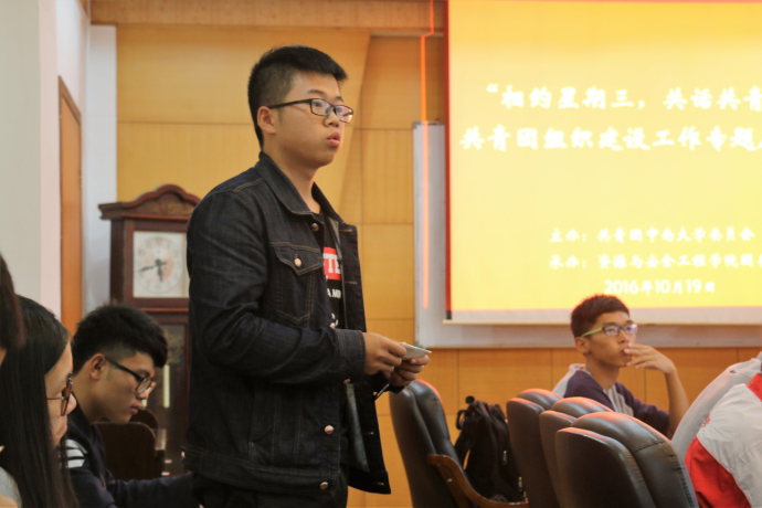 座谈会伊始,王书记对校团委以及院团委的具体工作与职能作了简单的介绍,对团委工作开展的重要性作出了强调:“中国共产主义青年团是发展中的生力军是党联系青年的桥梁与纽带,共青团工作开展的好坏直接影响了青年员工的积极性与凝聚力。”随后,王书记与参加座谈会的员工代表针对以下问题进行了深入的探讨交流:其一,对团支部“活力提升”工程的看法与相关的实施措施,其二,团支部在青年员工中的领导作用如何发挥,其三,对校团委的认识与对学院团委工作的建议。各团支书积极参与讨论,踊跃发言,各抒己见,如城地1502团支部的周哲同学,针对“如何提升团支部活力”这一问题向王书记提问,王书记进行了耐心而又细致的回答:“提升团支部活力的重要方法之一,就是举办新颖有创意、接地气、贴近同员工活的活动,比如结合校团委活动方向的主题联谊活动,这样既可以培养同班同学间的情感,又可以增进不同专业不同院系同学们的联系,培养默契,相互借鉴与学习,在不断交流之中,提升了团支部的活力。”