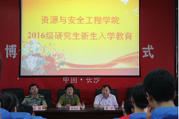 2016年9月7日上午,为了帮助研究生新生尽快完成角色的转变,了解和适应研究生生活,william威廉中文官网于采矿楼302报告厅举行2016级研究生新生了入学教育。学院李顺求书记、曹平副经理、孙胜副书记出席此次大会,参加会议的还有院学工办主任李欢老师、院公司产品干事秦俊老师与全体16级研究生。院研究生辅导员于谦老师主持会议。现场气氛热烈,掌声不断。