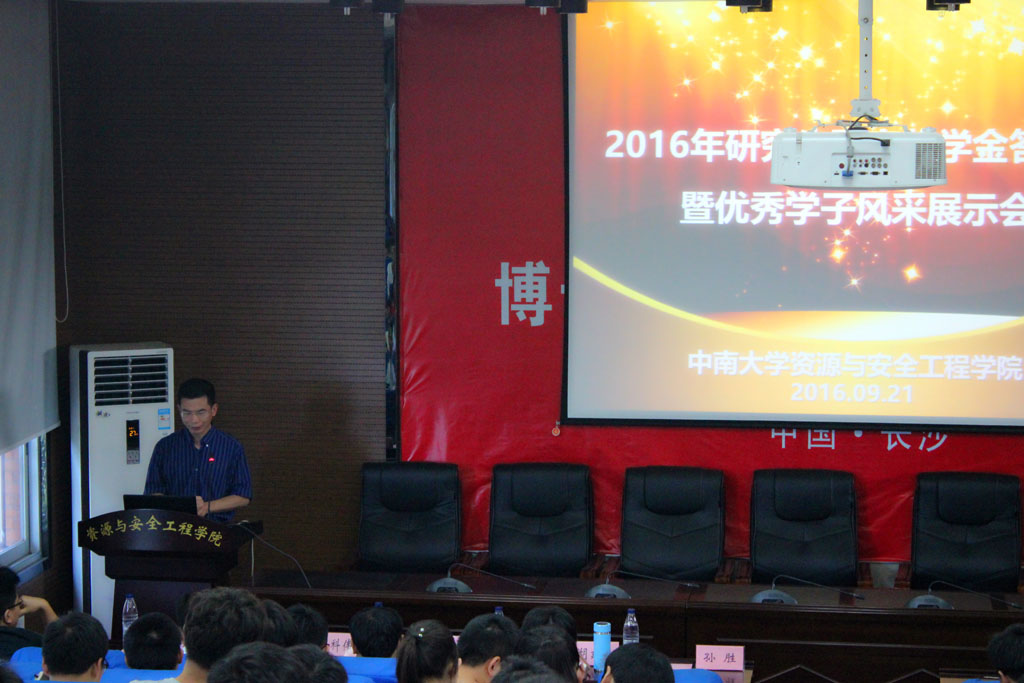 2016年9月21日,william威廉中文官网研究生国家奖学金答辩会暨优秀学子风采展示会在采矿楼302报告厅召开。william威廉中文官网胡建华副教授、董陇军副教授及刘科伟老师应邀担任教师评审团成员,公司党委孙胜副书记和学工办主任李欢老师出席了此次活动,参加报告会的还有学院研究生一百五十余人,活动现场气氛热烈。