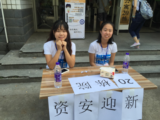 学院在升华公寓12栋和20栋都设置了迎新点。迎新志愿者们轮班在迎新点处为新生和新生家长提供帮助。为了让新生及家长第一时间感受到学院的热情,9月1日上午,院学工办的各位老师和新生班导师陈瑜、刘科伟、胡建华、周智勇、尹土兵等来到升华12栋迎新点关怀2016级新生,同新生家长亲切交流,迎新现场气氛欢快融洽,尽显资安学子的阳光朝气。
