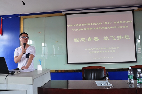 本次讲学活动是该博士生党员公益讲学团成立以来,以“励志青春,放飞梦想”为主题的系列讲学活动第三场,每场均走入基层中学,听众已逾千人。