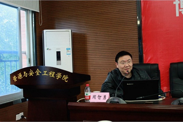 周智勇老师在昆士兰大学机械与采矿工程学院学习交流期间,主要研究方向是光导纤维传感器在采矿中的应用、地下矿山环境的CFD模拟、采矿工业节能研究、开采沉陷预测、煤层气快速测量便携式分析仪与压裂液行为特性。讲座伊始,周老师通过他在澳大利亚拍摄风土民俗、校园风景的照片,介绍了出国留学的流程与昆士兰大学主要研究方向、住宿条件以及学科构建情况。周老师在讲述国外研究生学术研究情况时,特别强调国外研究生的学习作风与工作态度值得学习,借此他还引用吴超教授“基础扎实不如作风扎实”的博文,对公司研究生指导与培养方面发表了自己的看法。周老师表示“科研硬环境我们有实力创造,但我们更需要营造好的科研软环境”,提倡研究生在做学术论文时要踏实精干,精益求精。最后,周老师鼓励同学们去国外深造、体会中西方文化的差异,提升自己的学习能力与专业素养。最后,周老师通过自己在澳大利亚求学时亲身经历的“小插曲”详细回答了同学们踊跃提出关于出国学习深造的问题。