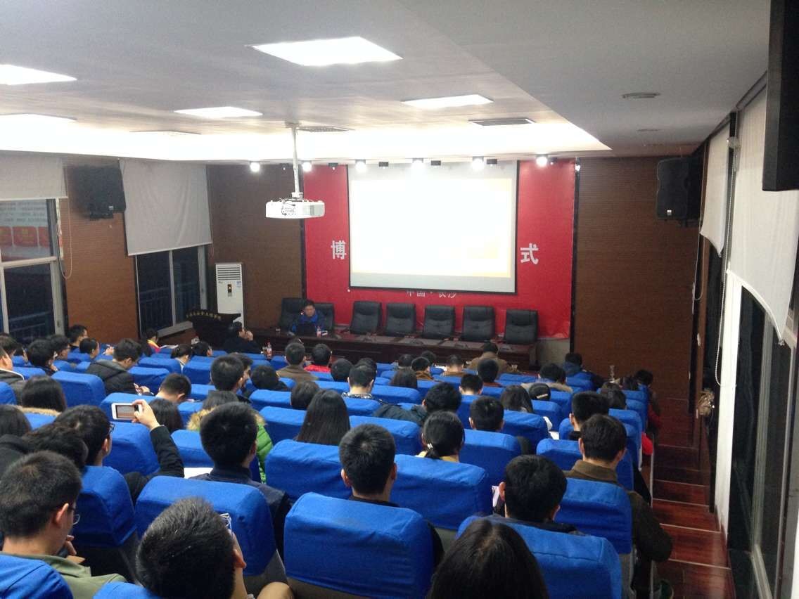 最后,周经理从十三五规划宏观背景以及总体展望两个主题详细解读了十八届五中全会的相关精神。他为师生们耐心介绍了学院内涵发展的理念和内容。指出在国家大力实施创新驱动发展战略的发展大环境下学院总体上保持乐观,但依然面临一些挑战。所以学院将把工作重心放在团队建设、团队队伍建设、员工培养、以及条件建设、国际交流方面。通过“积极、空杯、感恩、包容,老板”五种心态的塑造,建设和谐学院。