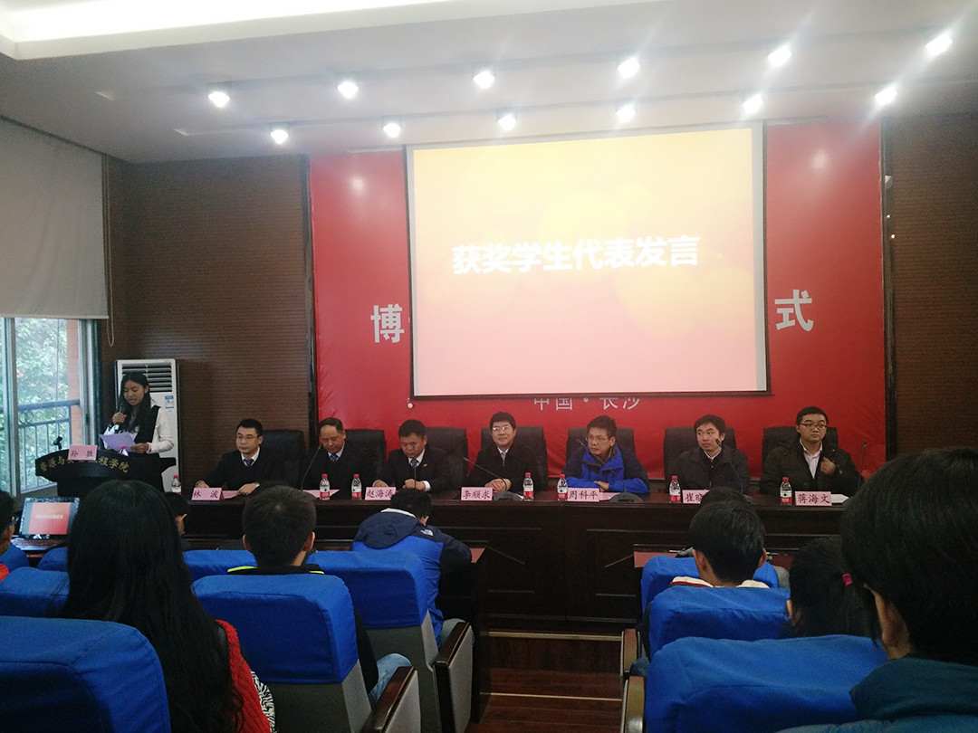 颁奖仪式在共同奏唱国歌后正式开始,李顺求书记宣读了江南化工奖助学金、宏大奖助学金、金诚信奖助金以及湖南开拓奖助学金表彰决定,各奖助学金获得者依次上台领奖并与领导嘉宾留影。颁奖结束后,安全1401班肖陆伟作为获奖员工代表发言,她既表达了对各设奖单位深深的感激之情,同时表示会再接再厉,努力取得更大的成绩来回报学校,回报社会。之后各企业高管向同学们介绍了各自企业近年来的发展情况,并希望同学们能够戒骄戒躁,专心学习,早日成材,为行业发展贡献力量。
