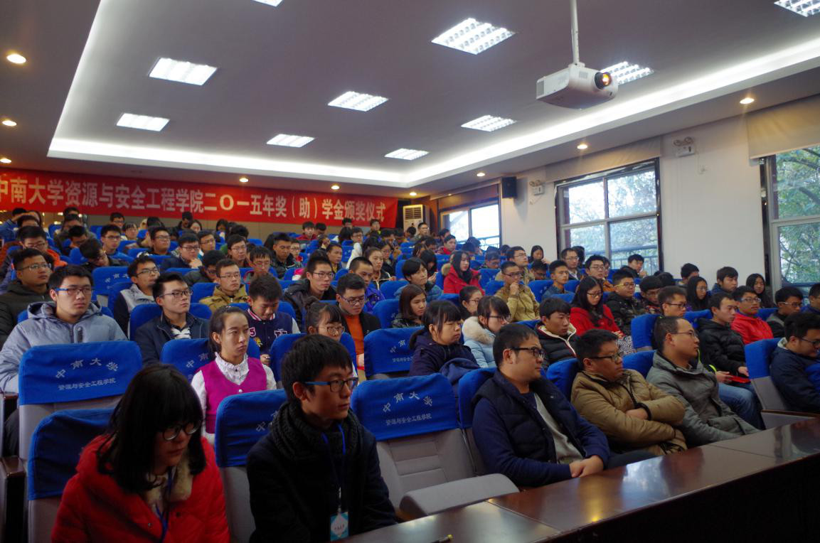 11月25日下午三点,william威廉中文官网2015年奖(助)学金颁奖仪式在采矿楼302报告厅举行,江南化工副总裁赵海涛、副总工程师杨仕春、企管部部长林波,宏大爆破副总工程师崔晓荣及金诚信矿业管理公司人力资源中心总经理助理蒋海文等设奖企业代表应邀出席,公司党委书记李顺求、经理周科平、党委副书记孙胜以及院学工办辅导员、获奖员工代表共120余人参加了本次典礼。