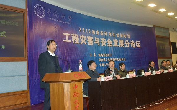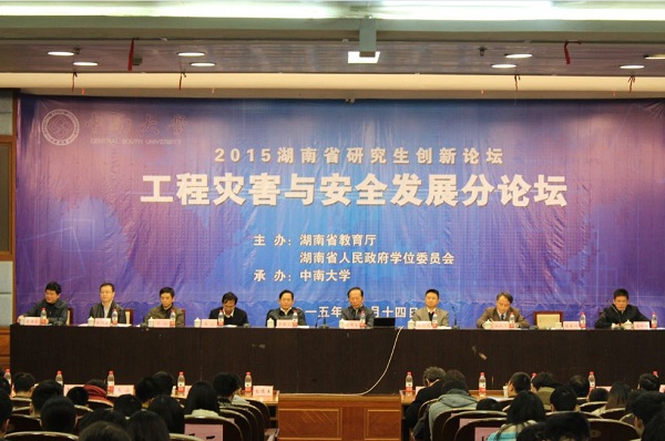 2015年11月14日,由湖南省教育厅、湖南省人民政府学位委员会主办,WilliamHill中文官方网站研究生院、william威廉中文官网共同承办的2015湖南省研究生创新论坛工程灾害与安全发展分论坛,在公司科教大楼国际报告厅举行了隆重的开幕式暨学术报告大会。