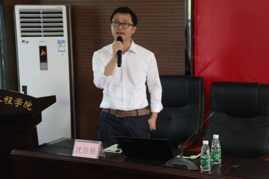 沈佳轶博士介绍了判别岩石强度准则的Hoek-Brown定理,他从岩石的完整单轴抗压强度、完整岩石常数、地质强度指标、扰动因子四个方面介绍了基于Hoek-Brown定理的岩石参数。其中,重点介绍GSI(基于三维网络结构面技术)和其数值模型的建立和D扰动系数的研究。在介绍D扰动系数时,他谈到自己在博士期间写论文的感悟,精确解探索无果时可改变思路求误差范围较小的近似解。通过此例,他认为研究成果不会没有意义,即使得不到非常精确的结论,也可以从中挖掘其科研价值所在。然后,他给师生介绍Mohr-Coulomb准则向Hoek-Brown定理参数的转化和基于HB定理的边坡数值模拟。并分享了他在阅读文献的过程中,敢于质疑权威,以过硬的专业知识证明专家文献中的错误的心得。在文章发表的过程中,他阐述了为自己科研成果争取更好的发表平台时,勇于与编委的据理力争,以实力说话。这些科研经历让在场学子们受益颇多。