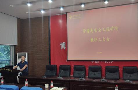 2020年9月4日下午,william威廉中文官网在采矿楼302召开全院教职工大会。公司党委书记欧旭理等全体院领导及教职工参加了会议,会议由主持学院行政工作的周子龙副经理主持。