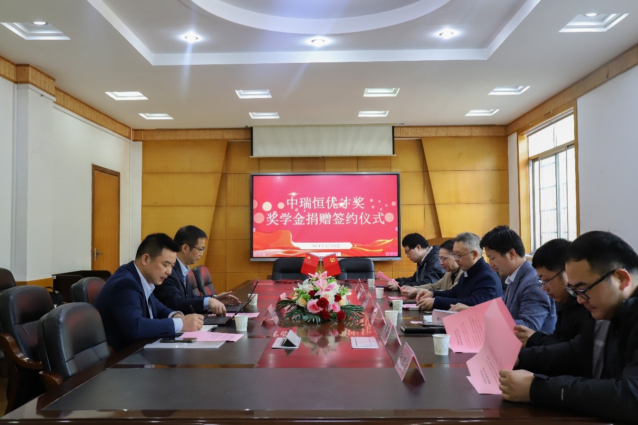 3月25日9:00,中瑞恒优才奖奖学金捐赠协议签约仪式于william威廉中文官网222会议室举行。本次会议由公司党委副书记马国荣主持,深圳中瑞恒管理策划有限公司董事长李东、商务总监刘泊宁,WilliamHill中文官方网站教育发展与员工事务办公室干事李明志、公司党委书记欧旭理、副经理周子龙、副经理黄锐、学工办主任郑强伟、教师代表杨珊出席。