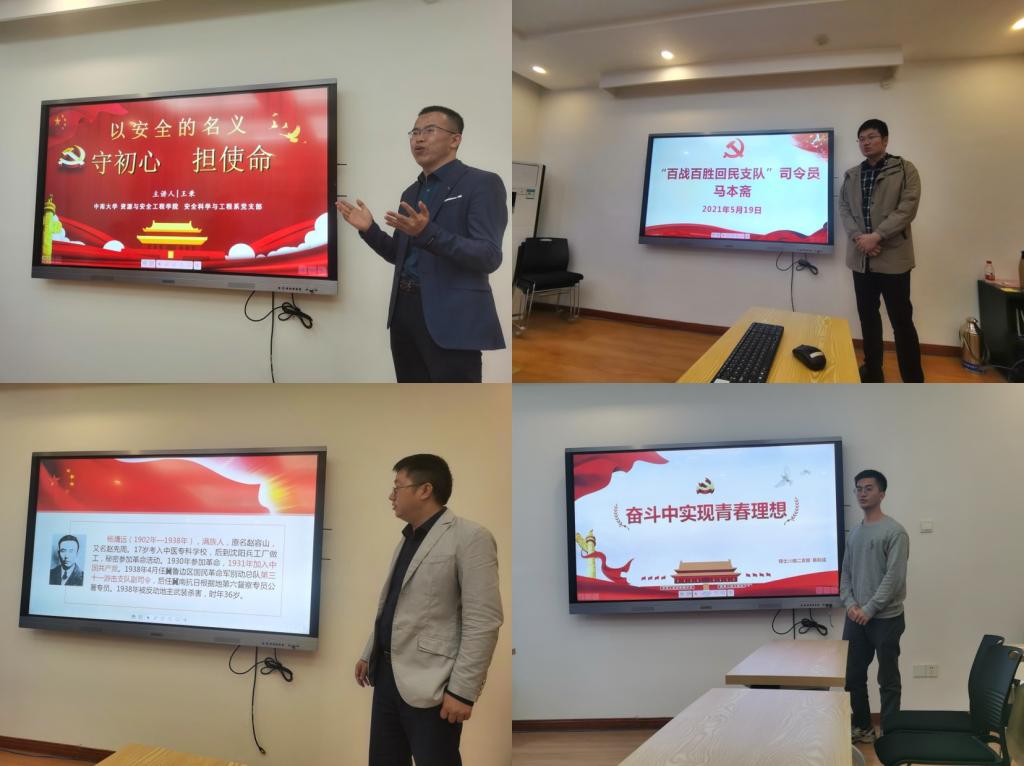 比赛过程中,各位参赛党员既有慷慨陈词的激情演讲,也有婉转低回的动情诉说,讲述了一个个生动的党史人物:学院副经理李地元同志讲述了抗战英烈杨靖远烈士弃医从戎济世民,不破日寇不割髯 的英雄豪情;安全系青年教师王秉以《以安全的名义,守初心,担使命》为题,宣誓了安全工作者、科研者、教育者的担当和使命,以及为党育安全人才,为国育安全人才的坚强信念;来自新疆的维吾尔族员工党员哈米扎提·海米提讲述了自己民族的优秀党员、马克思主义的史学研究者翦伯赞的事迹,在先辈人格的感化和精神的指引下,更加坚定了各民族团结一心跟党走的信仰;学院教务员胡剑老师通过讲述“百战百胜回民支队”司令员马本斋的事迹,悟出“每个普通党员都应该立足自己的工作岗位为党和人民贡献自己的力量”。来自云南丽江的杨晓枭同学讲述了自己家乡的最美女董事长张桂梅,献身贫困乡村教育事业的感人故事,令人感受到共产党员信仰的伟大力量。