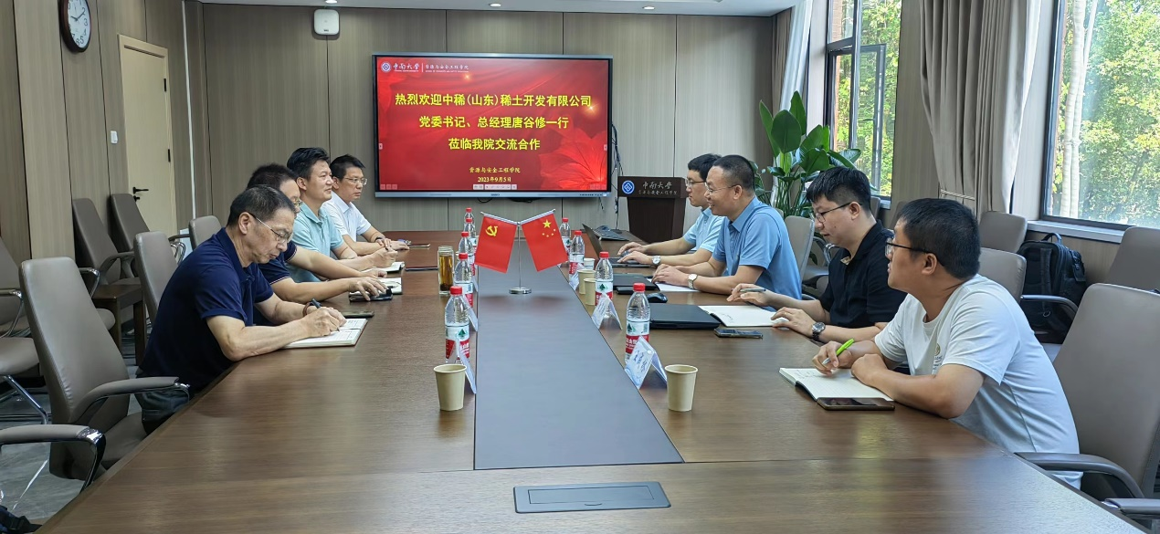 唐谷修总经理介绍了中稀(山东)稀土开发有限公司情况,并着重介绍了企业生产经营中面临的科学问题与采矿技术难题,希望与母校达成长期合作关系,为企业生产和高质量发展提供理论支撑和技术指导。参会领导和教师就双方加强科技项目合作、人才培养等话题进行了深入探讨和交流。