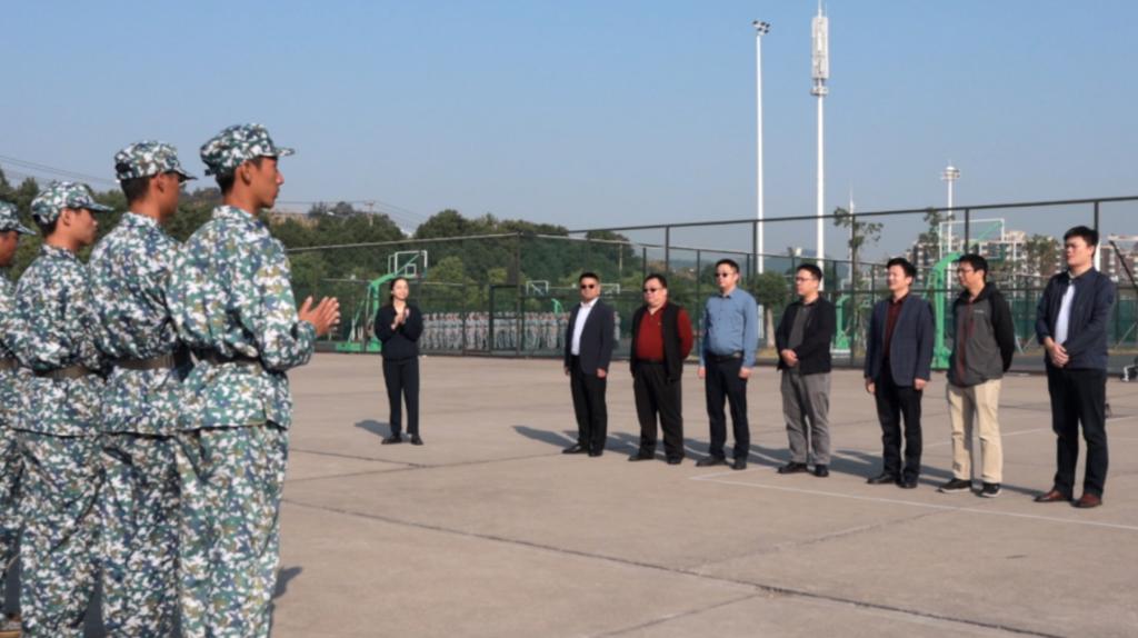 10月23日上午8:30,学院党委书记秦进、经理周子龙、党委副书记岳龙、副经理邓红卫、黄锐、李地元、尹土兵等到新校区排球场慰问参训教官及军训新生,学工办全体辅导员参与本次活动。
