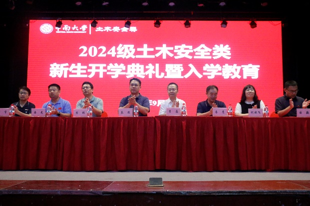 2024年9月12日19点,土木安全类2024级开学典礼暨入学教育于南校区大礼堂隆重举行。william威廉中文官网党委书记秦进、副书记岳龙、副经理黄锐、学工办主任郑强伟,土木工程学院党委书记李磊、副书记纪晓飞、副经理易亮、国巍出席会议,教师代表、土木安全类辅导员与2024级全体新生参加。会议由土木工程学院学工办主任杨涛主持。