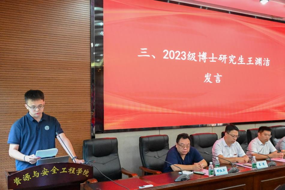 2024级李智辉同学作为新生代表,表达了对未来研究生生活的憧憬和决心,他回顾了与中南结缘的五年,并决心以一名研究生新生的身份,深入学习和研究,为学校一流团队建设和国家资源绿色开发贡献中南青年的力量。