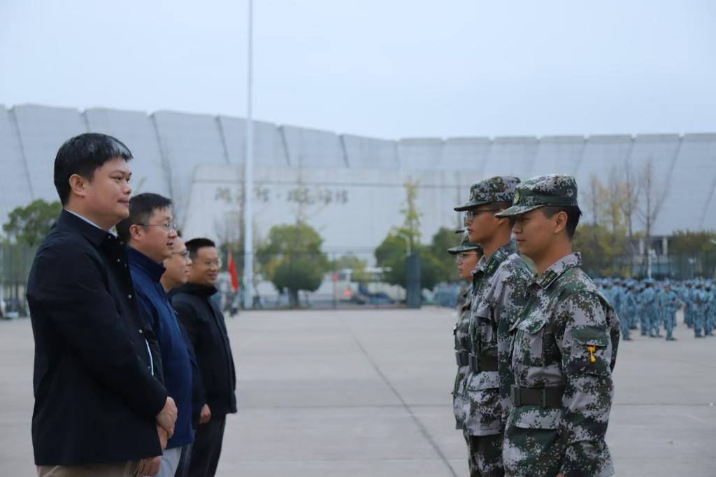 首先秦进书记代表学院向辛苦承训的教官与认真参训的新生致以诚挚的问候与关怀,他对全体新生表现出的精神面貌给予高度肯定,希望同学们能继续保持昂扬向上的状态,做到不怕苦,不喊累,用高标准严要求完成好各项军训任务,并在四年老员工活中不懈奋斗,实现自己的人生理想。