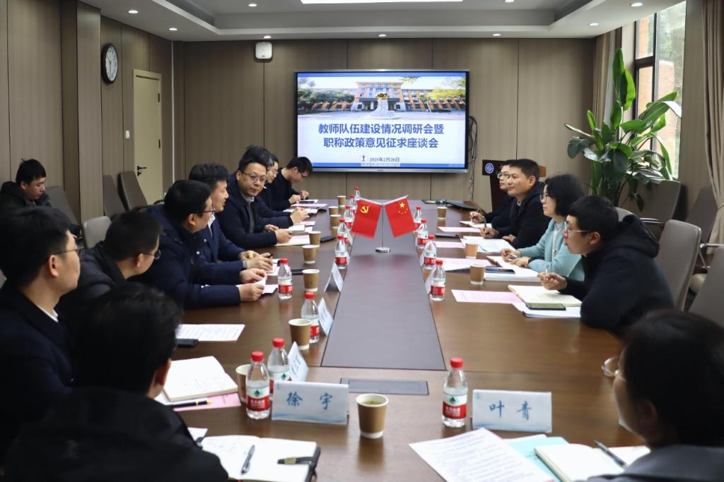 随后,人才工作办公室(博士后管理办公室)刘华森副主任、人事处张仕璟副处长分别介绍了此次调研的背景和目的。他们指出,学校高度重视教师队伍建设,此次调研旨在深入了解学院在教师队伍建设方面的实际情况和需求,为学校制定更加科学合理的人事政策提供依据。此外,还就学校拟修订的相关改革政策进行了解读,并听取了学院教师代表的意见和建议。