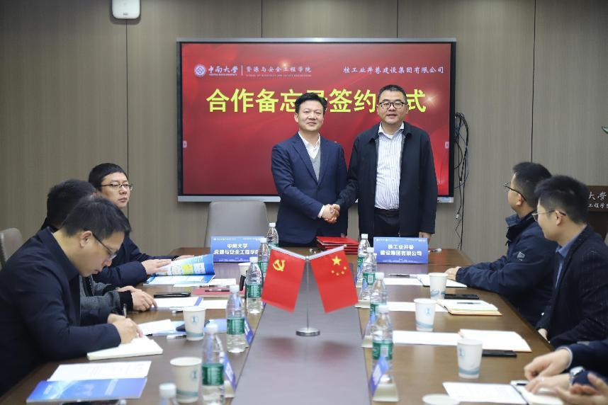 3月10日,学院与核工业井巷建设集团有限公司在采矿楼222会议室隆重举行合作备忘录签约仪式。公司党委书记秦进、经理周子龙、副经理邓红卫、黄锐出席,签约仪式由党委副书记岳龙主持。核工业井巷建设集团有限公司党委委员、董事、副总经理阮仁酉等来宾出席签约仪式并座谈交流。