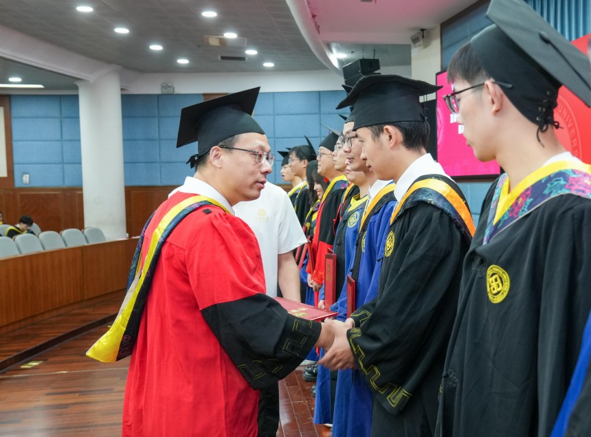 仪式在雄壮的国歌声中拉开序幕。典礼伊始,黄锐副经理和李地元副经理分别宣读了本科生学位授予名单和研究生学位授予名单,尹土兵副经理为学院2025届员工联络员颁发了聘书。
