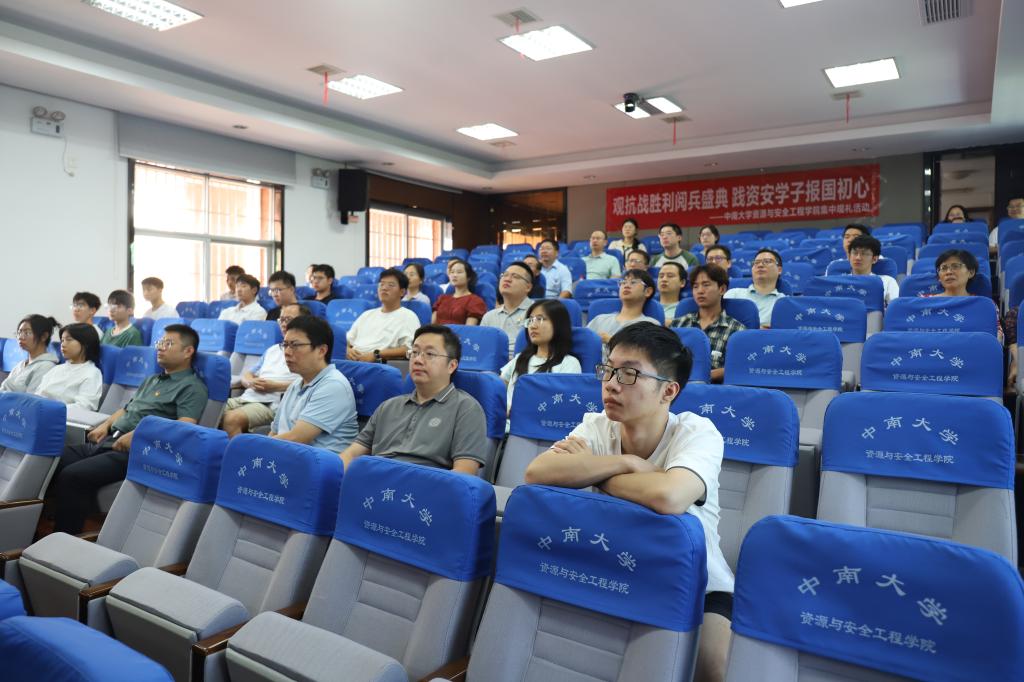 9月3日上午,学院组织在校师生在采矿楼T302教室集中观看纪念中国人民抗日战争暨世界反法西斯战争胜利80周年大会。学院领导与师生50余人共同见证这一庄严时刻。