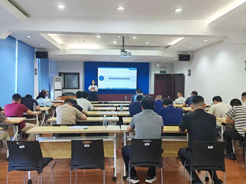 随后,2024级班导师何秋娟老师分享育人经验。何老师以所在班级管理实践为切入点,重点介绍了“集体晚自习”“班级读书会”等特色活动,通过定期组织读书分享、主题研讨,不仅营造了浓厚的班级学习氛围,更促进了员工间的思想交流与能力提升,其务实有效的育人方法获得在场班导师的广泛认可。
