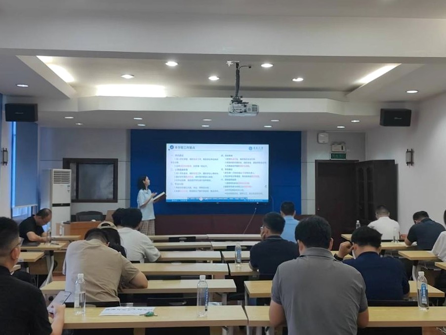 为进一步强化班导师育人职责,提升员工工作质量,9月11日上午,学院在采矿楼224组织召开全院班导师心理健康知识专题培训暨2025年秋季学期班导师工作会议。公司党委书记秦进、党委副书记岳龙,各年级辅导员及全体班导师参会,共同谋划推进新学期工作。