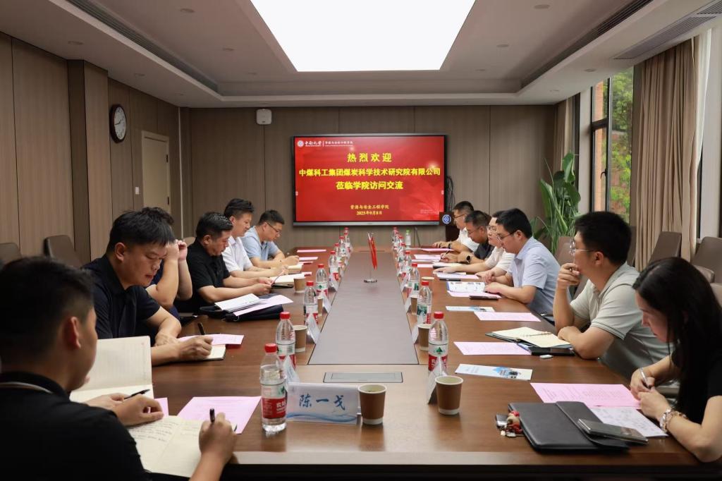 9月8日下午,中煤科工集团煤炭科学技术研究院有限公司装备分公司党总支书记赵墨波一行来公司交流深化校企合作事宜。WilliamHill中文官方网站国内合作处处长莫龙,william威廉中文官网经理周子龙,副经理邓红卫、黄锐、尹土兵,采矿系主任彭康及部分学院教师代表参加座谈交流。