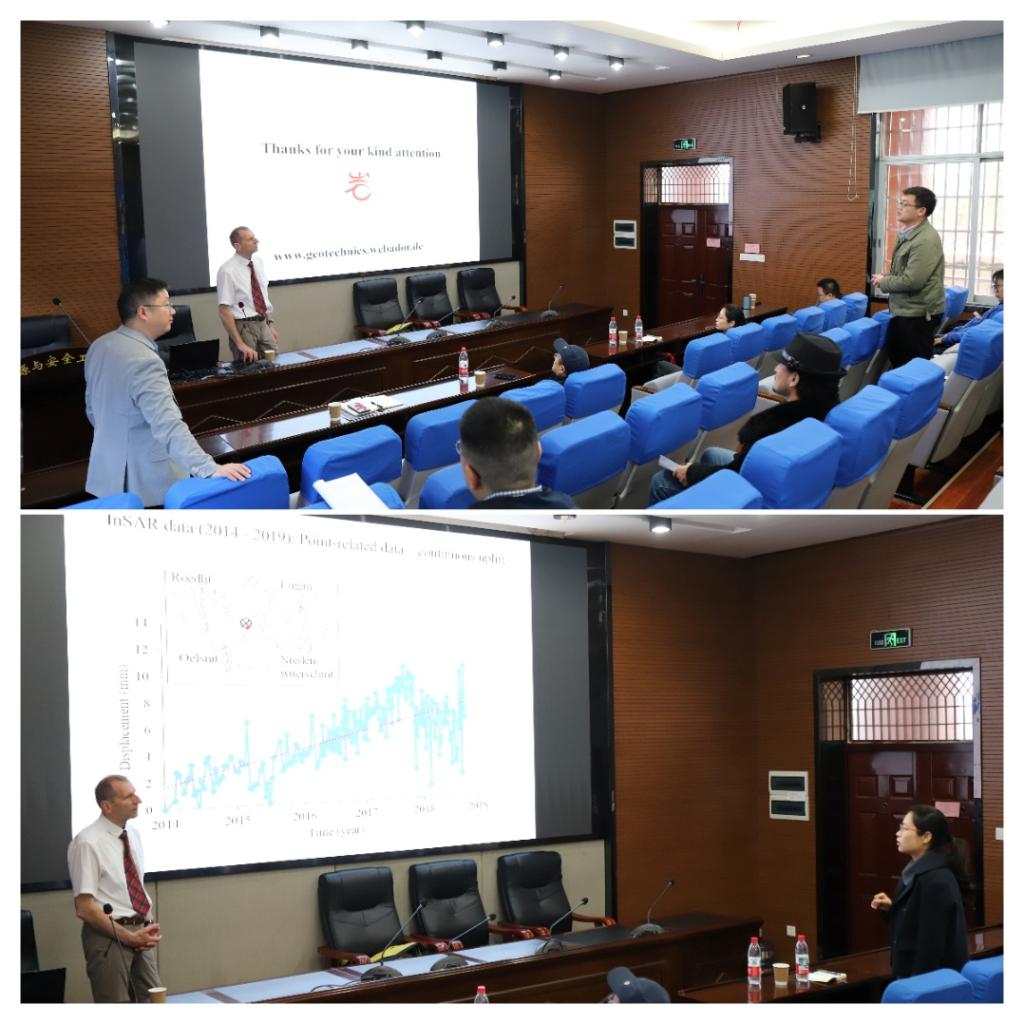 报告会上,Konietzky教授围绕地下空间可持续开发利用,系统介绍了地下空间在能源储存、地热利用、基础设施建设、防灾减灾等方面的应用潜力,深入分析了地层变形、环境影响、长期稳定性等关键技术与安全风险。结合大量研究案例与模拟成果,重点讲解了废弃矿井资源化利用、盐矿长期力学行为、核废料地下处置库热-力-水耦合分析等前沿内容,展示了InSAR监测、3DEC/FLAC3D数值模拟等技术在工程实践中的应用,兼具理论深度与实践价值。
