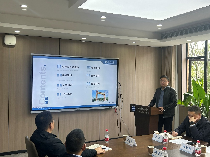 会议伊始,李地元副经理对长沙有色院一行的到访表示热烈欢迎。随后,朱志根副总经理逐一介绍了来访嘉宾。接着,长沙有色院科研创新中心(科技管理部)主任熊有为详细介绍了长沙有色院的历史沿革与发展概况。李地元副经理随后介绍了资安院的办学历史、团队建设、人才培养与科研创新成果,并逐一介绍了学院参会人员。